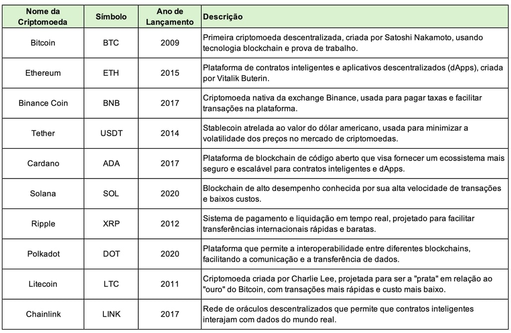 Quais as principais criptomoedas